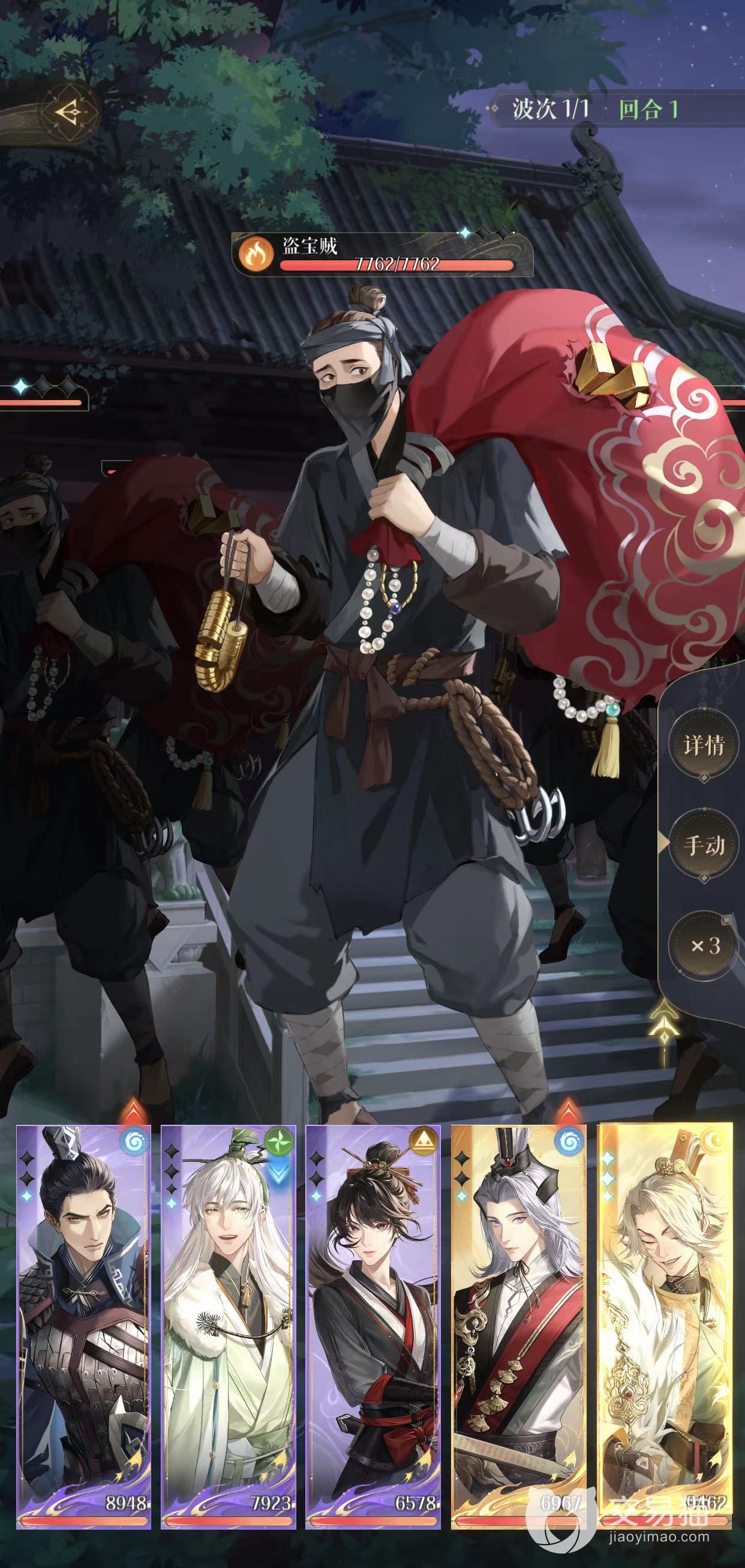 在五铢钱历练第五关巨额贸易中,玩家们迎战的敌方是五名等级为五十级的盗宝贼,他们的攻击属性均为火系。