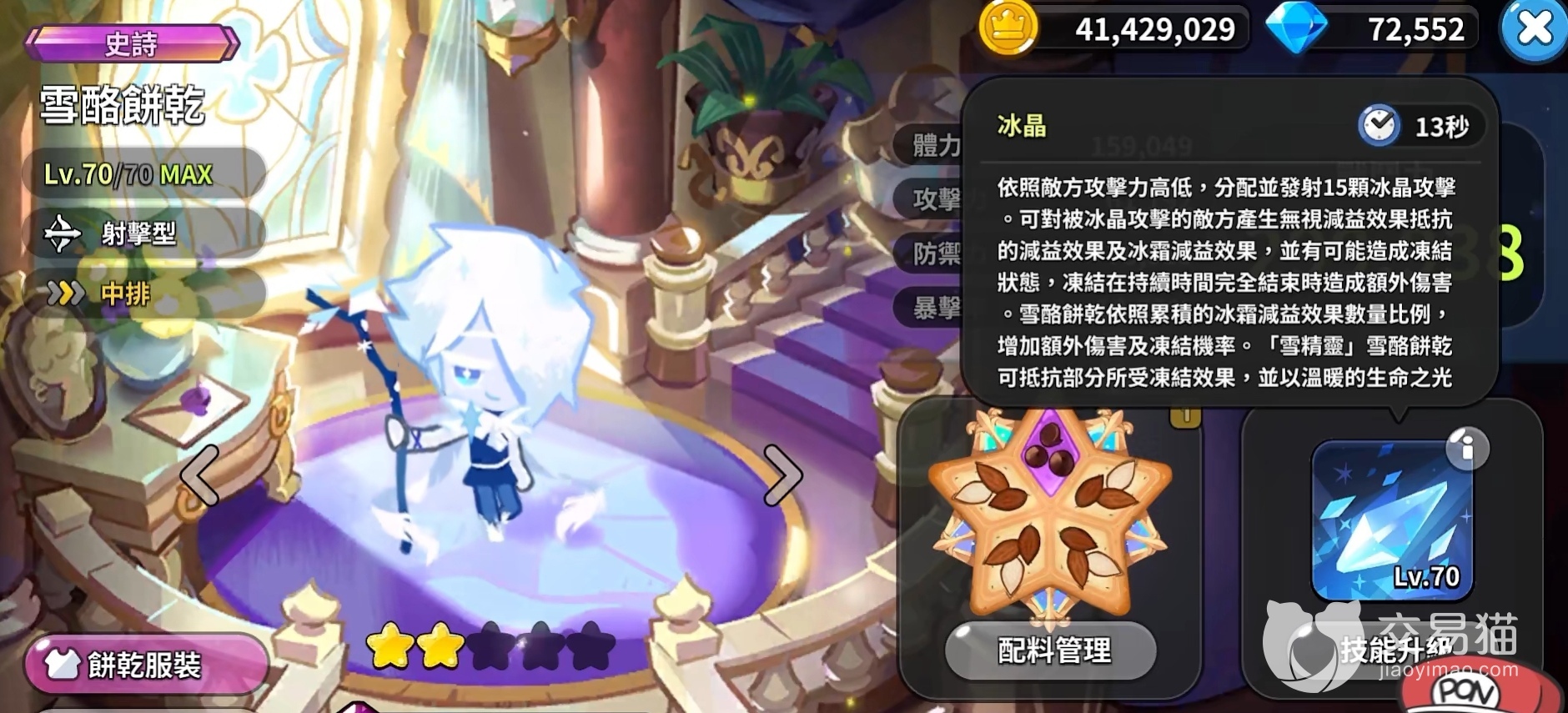 不过,如果可以给雪酪饼干搭配一个合适的阵容的话,它所展现出来的能力会更加厉害,所以有机会抽取到雪酪饼干的童鞋,记得给它搭配上合适的冰雪阵容。