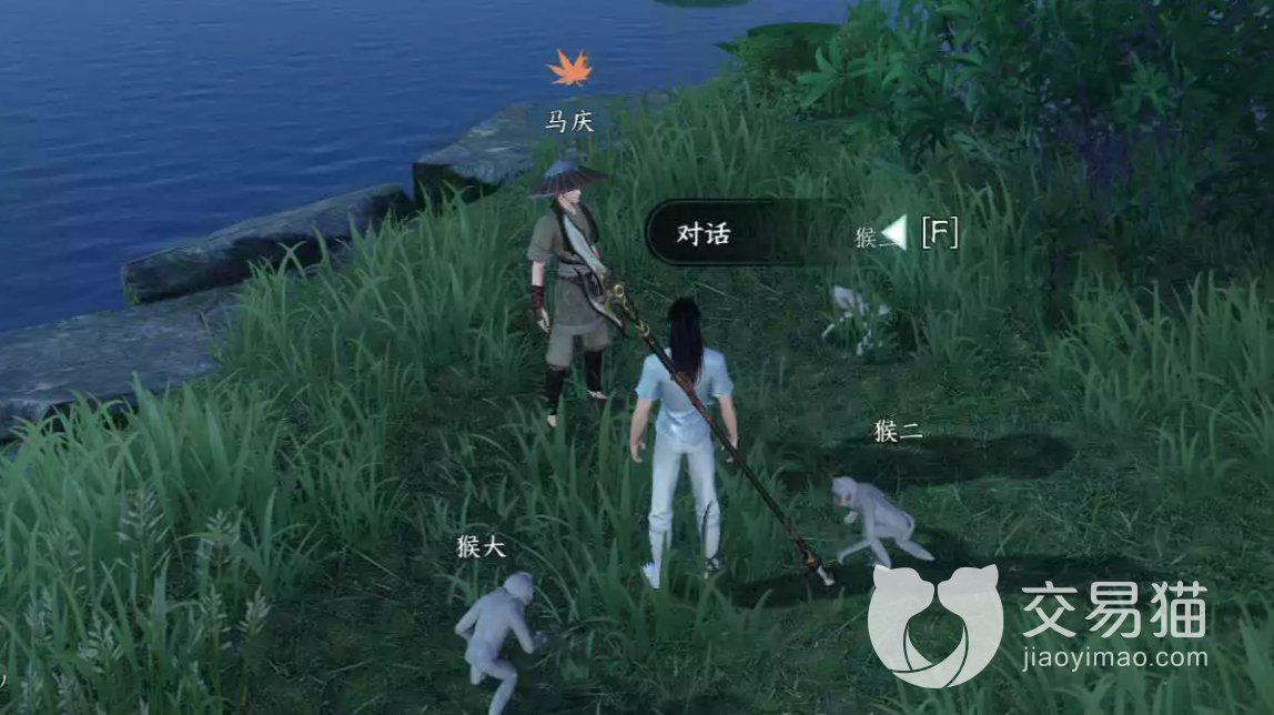 玩家们在湖边走动的时候便可以看到被三个猴子所包围的NPC角色马庆,玩家们直接上前与该角色对话,便可以开始任务。任务很简单,就是一个较为常规的刷怪任务,玩家们只需要击败附近的三个猴子即可以完成。正所谓路见不平,拔刀相助,这些泼皮流氓匪猴还是得靠我们来解决。