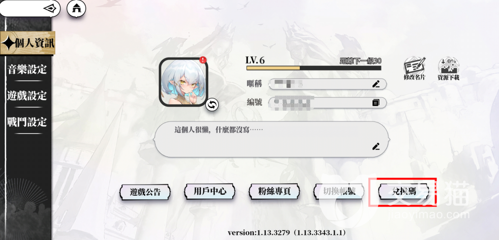 在获得了相应的兑换码之后,直接点击主菜单界面的左上角的玩家头像,在弹出的用户信息界面,找到“兑换码”,然后将你得到的礼包码粘贴进去就OK了,注意不能有空格,并且区分大小写哦!