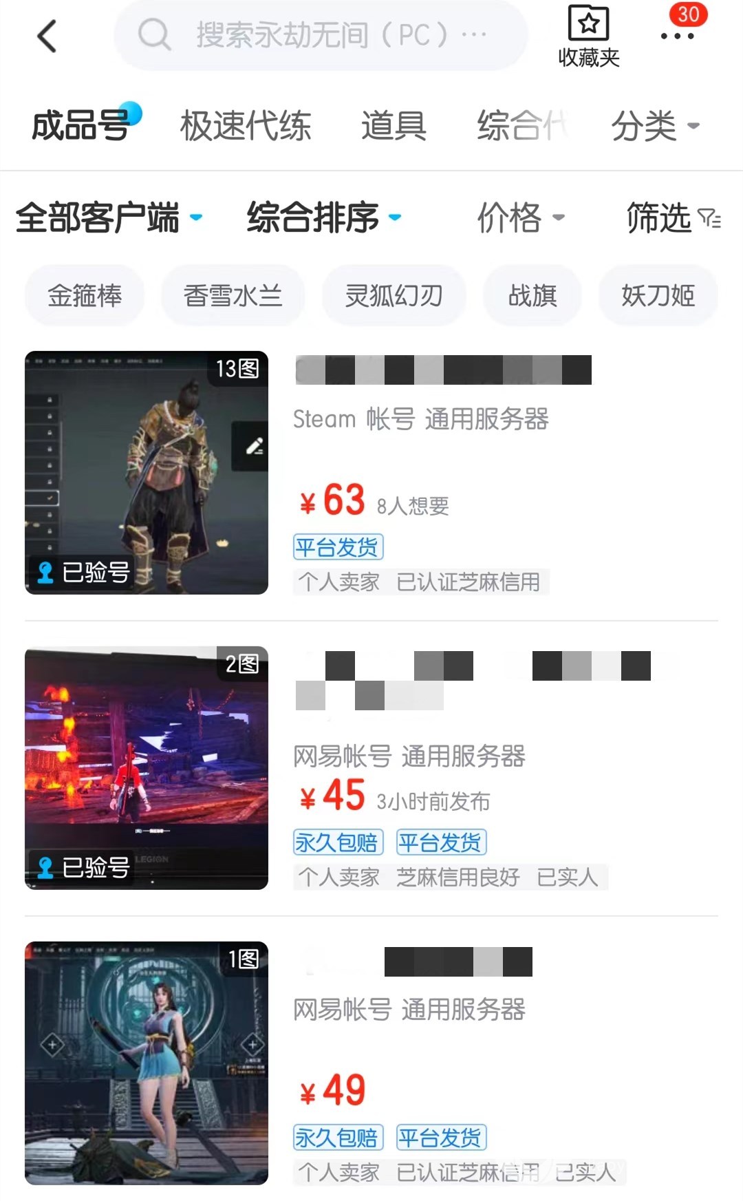 在大家成功登陆交易猫进行搜索以后,就可以看到大量的永劫无间的账号,在这些商品中间,大家可以挑选自己想购买的账号类型,可以在分类当中去寻找,也可以通过筛选功能快速找到你想要的账号类型,那么如何买到划算的商品呢,大家可以通过各个卖家给出的价格进行对比,了解你要购买账号的大概行情,有些商品还是支持议价的,你也可以通过这种方法进行砍价。