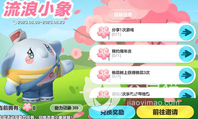 本次周年庆的第一个活动,便为获取到流浪小象哆哆,在活动期间,完成了活动任务就可以获得活动奖励桃花硬币,这些桃花硬币都可以送给小象,然后就可以解锁9个故事和领取特殊表情“颤巍巍”。如果赠送的桃花硬币达到10个,就可以去兑换典藏奖励流浪小象哆哆。
