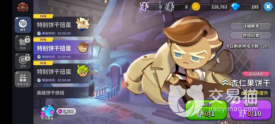 其次再介绍值得练的饼干之前,冒险家们也要简单了解一下怎么获得一些稀有角色吧,使用手头拥有的饼干模具就能够进行一连抽,模具也是有类型之分的,一个是魔法的,一个就是普通的,相对应的抽出来的角色等级也是不一样的,所以想抽出来稀有的饼干的话最好还是使用魔法饼干模具进行抽,这样出来的饼干才是比较稀有的。