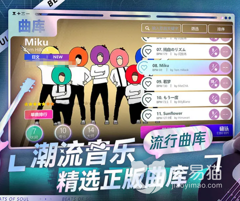 这款游戏和其他音乐手游相比,它多了许多国内外的各类歌曲。并且每首歌曲都有着各种星级的难度可供玩家们进行选择。无论你是新手还是老手,相信都可以在这款游戏中找到自己最适合的难度来尽情体验游戏。