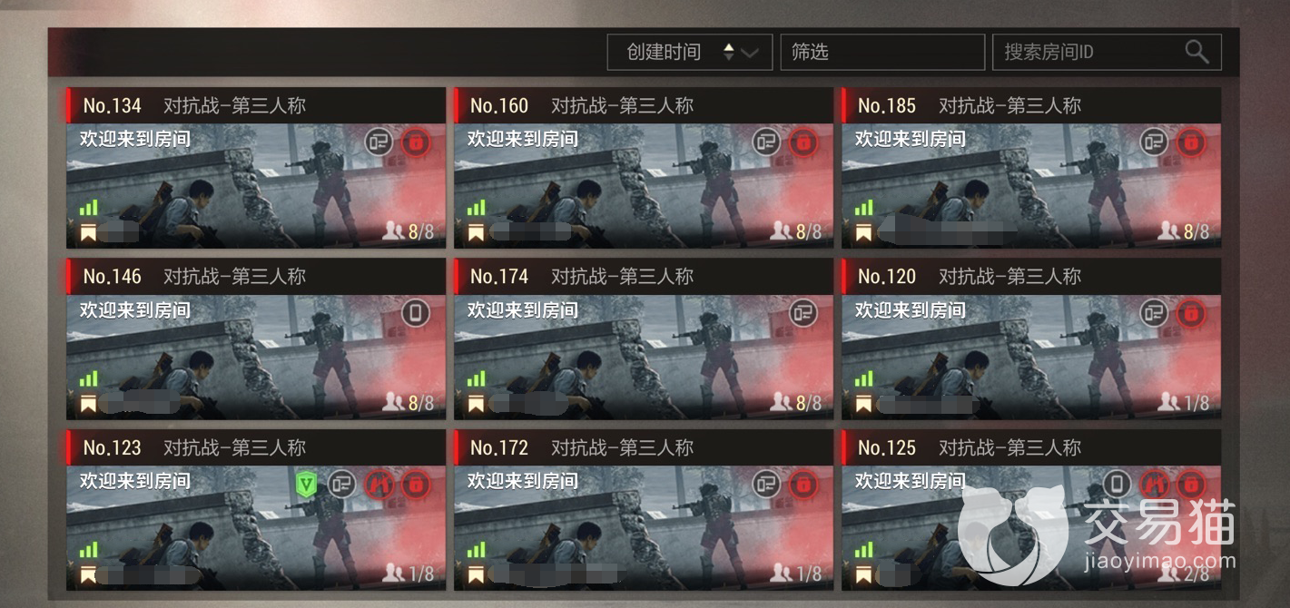 游戏中大家只需要在匹配对局的下方点击房间,就能看到满满的房间列表了,看到之后大家可以加入或者自己创建房间,加入就不多说了,大家直接点击进入房间列表中的一个房间就行。这里主要说的是创建,大家在选择创建后会进入到房间创建界面。