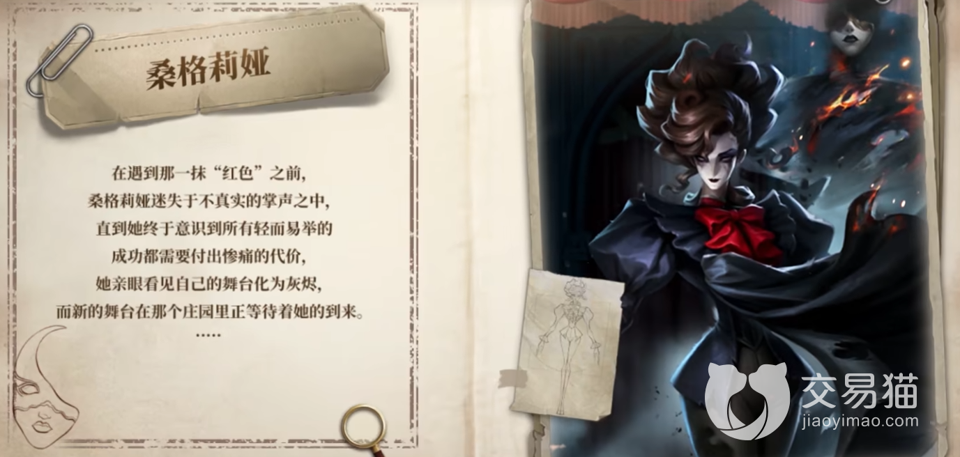 歌剧表演者桑格莉娅,是一位全新的监察者角色。关于其本身的剧情说明,她原本是一位非常有名的歌剧演出者,直到有一天,她亲身看到自己舞台被红色给吞噬干净。之后她便来到了庄园这个全新的舞台上来表现自己。