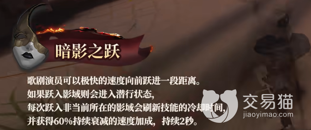 以上便是第五人格中的新人物歌剧演员的全部技能详解。其实歌剧演员还可以把暗影之跃进行强化,强化过了提升2成的移动距离。总体而言这位新的监管者本身很擅长移动和潜行。灵活机动性很高,更加适合到处游走。