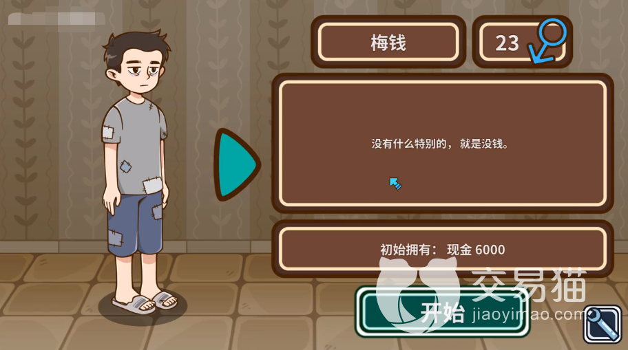 然后大家选择的角色也是没有什么属性加成的,一般都只有初始的现金,在人物介绍上面也都很简短,看起来比较丧,没有跟剧职业设定的角色,要是大家要参与的话,只能根据角色拥有的初始资金来计算,一般是只有两万,最少的是只有六千,大家要是想要挑战高难度的话就选择六千的角色吧。