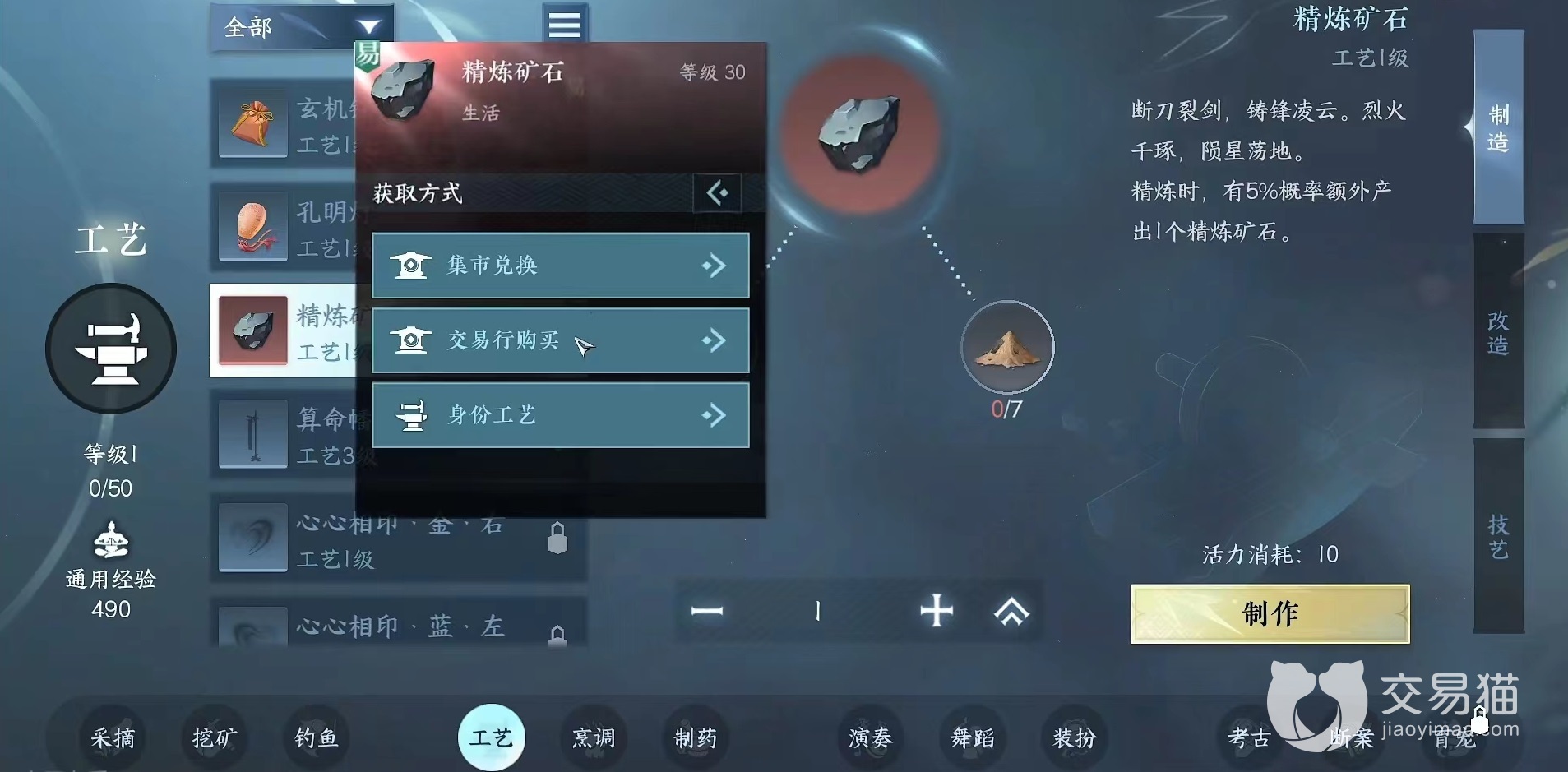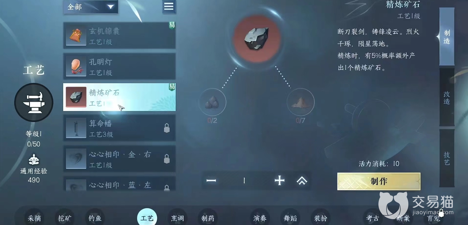 点击学习工艺之后就能获得基础工匠身份,初期可以制作一些非常有趣小道具,例如装备、船只和家具等,这里装备也不是顶尖类型,只能够用于娱乐。这些产物大部分都能够自由进行交易,给有需要的玩家使用,自己也能获得一些铜币。从收益来看工匠在所有身份中是比较可观的一类,建议平民玩家可以先选择。之后能够进阶分为墨客、手艺人、画师和采风者四类。进阶身份基础条件就是达到工艺10级精通,当然后续还有其他条件。