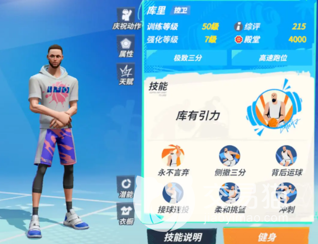 库里在游戏里面的定位虽然是PG,但它的三分球属性放眼整个游戏都是最高的,各种极限投篮和超远距离投篮都很在行,在被动技能的状态下还能累积三分球的成功率,但是缺点就是获得难度过高以及后期培养难度大,但如果说能够将其培养至顶级的话,那么在外线方面库里的投射能力特别夸张,也包括突破禁区的抛投和两分球。