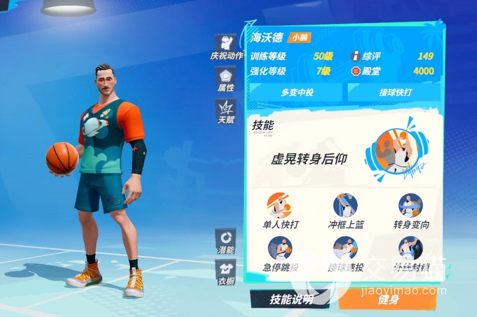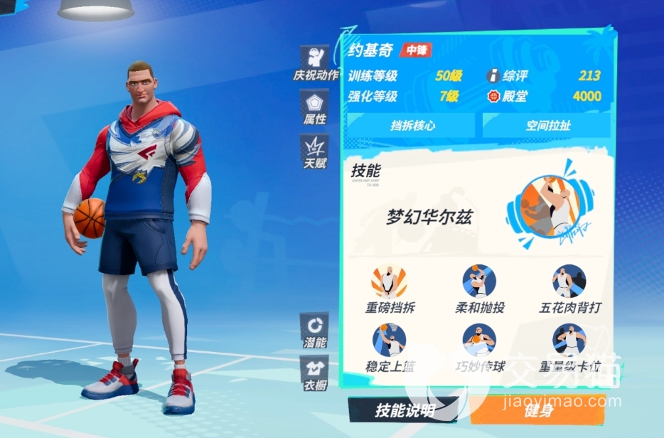当然,这个人的技能侧重于加强近战攻击,这可以提高他们的突破和上篮等技能。在实战中,可以控制这个角色突破对方的防守并到达罚线处,并且篮下还没有对应防守,那就是玩家得分的最佳时机。