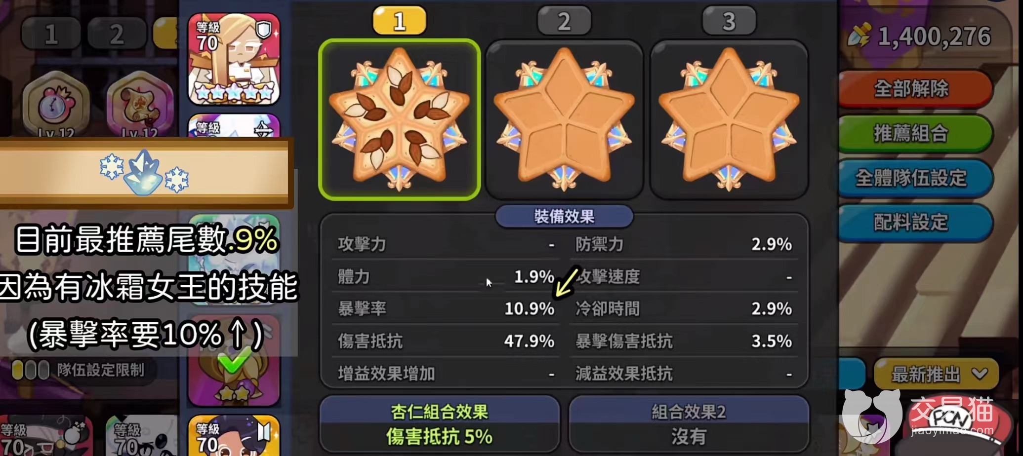 在和你的队友作战的时候,玩家可以选择将暴击率的尾数调整到0.9%,因为冰霜女王可以给团队获得更多的增益效果,最常见的组合就是搭配三冰阵容,其中三个英雄都可以释放出冰的技能,这样就可以更好的限制敌方。以上就是小编带来的冲呀饼干人王国预言家饼干技能强度介绍,快来一起和你的伙伴参与饼干人作战吧。