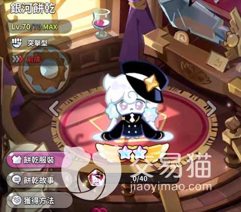 第三个就是银河饼干,银河饼干大家应该在很多的阵容里面都有看到过,银河饼干它的外形也是最受玩家欢迎的,看起来是一个非常可爱的小女生,在使用的时候,银河饼干它技能虽然只有一个,但是带来的效果是各种buff可以叠加上的,并且只要他在场上就可以一直不停的给对面带来防御上的压力,虽然使用技能的时间比较慢,但是他可以利用开火车的技能去撞击对面的饼干,附带的各种影响非常的多,所以大家如果使用银河饼干的话,各类挑战都是可以参与的,不过最适合他的还是公会战队玩法。