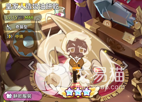 皇家人造奶油饼干,它在一开始的属性上面就属于一个高输出角色,在体力值和防御值上面,刚开始就远远抛开了其他的饼干人,如果是使用技能的话,可以发出火球的技能带来一定的伤害,而且他这个技能是会直接针对对面目前输出最高的角色,而且造成伤害之后还会降低对面的防御力,减益效果的话在影响成功之后会给对面叠加三层负面影响。