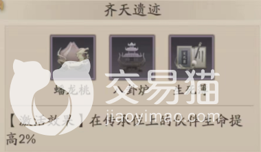 后期有条件的朋友还可以通过凑齐“蟠龙桃”和“八卦炉”两件法宝来与生死簿组成齐天遗迹的羁绊,这个羁绊可以让你传承位的伙伴额外提升2%的生命值,这个血量的提升是十分关键的,你传承位上的伙伴越肉,那么收益就越高。