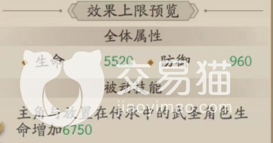 然后通过对其属性上限的预览,还可以看到该法宝满级后的具体数值,可以看到它直接增加5520的生命值和960的防御,这个数值作用在脆皮主C身上会是一个很大的提升,从此再也不用担心你的主C因为身板脆而提前暴毙了,当然,它也是可以应用给前排的,这样可以让你的前排更肉,后面的主C因此就有了更多安稳输出的机会。
