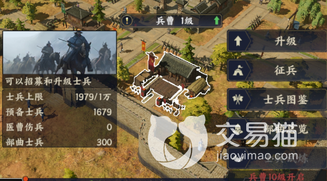 兵种分成了5种,第一是盾兵,盾兵是做防御使用的,一个军队的最前排开场的就是盾兵,这类士兵不仅要保护自己还要保护后面的士兵,本身的防御属性是最高的,有三个小分类是武卒、盾甲士、虎卫军。第二个是骑兵,骑兵也三个小分类西凉铁骑、幽州突骑、虎豹骑,骑兵的话是可以攻防兼备的,血量也不少,可以站在盾兵身后,作为军队的第一小队攻击。