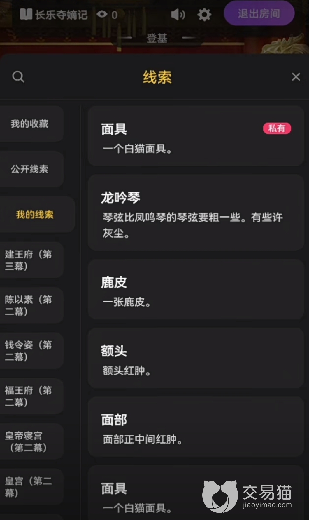 第二幕的凶手是陈以素,那么小编是如何锁定真凶的呢?首先第一点是根据死者的死因。因为死者皇帝身上并没有挣扎的痕迹,说明死者是死后头才被割下的,并且凶手布置了密室现场,造成一种密室杀人的状态。再根据茶水中含有的壮阳物质和惊魂散结合在一起,能够导致死者的心脏停止跳动死亡,因此锁定陈以素和王继韬这对情侣,能够以此推测出陈以素是主谋,王继韬是帮凶。
