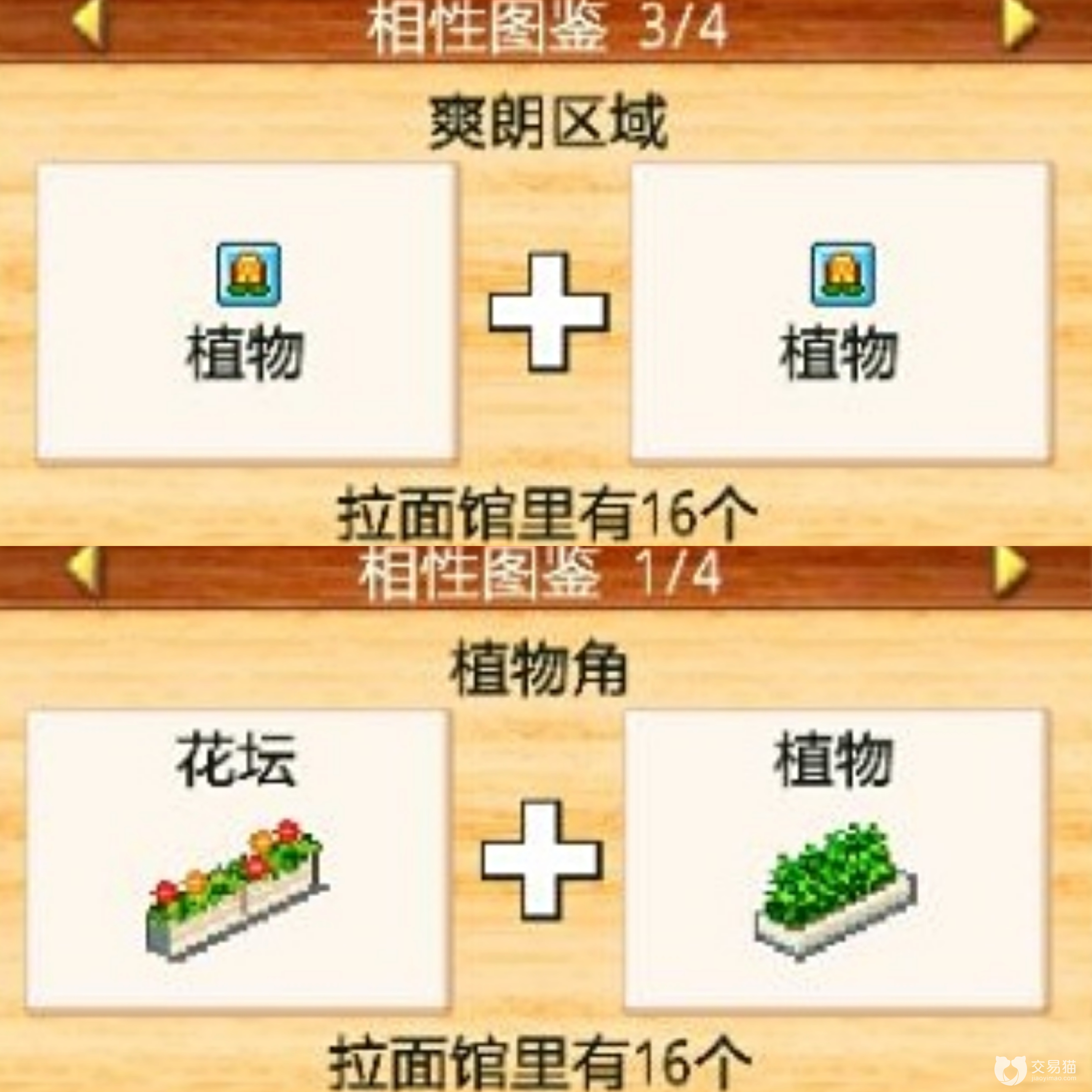 开罗拉面店中的设施有“相性组合”这一机制,合适的搭配在一起,将产生一定效果加成。植物区:花坛+植物,基本区:植物+旗帜,清洁区:自动售货机+垃圾箱,清爽区:植物+植物,气氛区:植物+风情,治愈区:植物+休息,放松区:休息+休息。各位在布局时也要考虑到这一点。