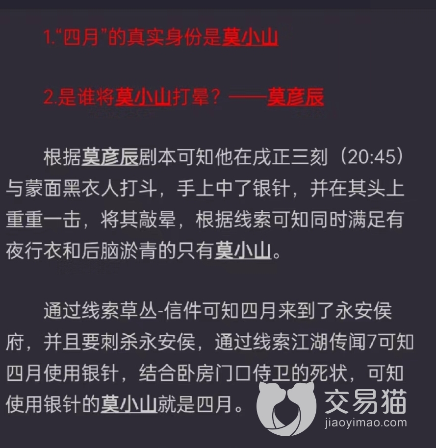 四月的真实身份是莫小山。莫小山为了保护白望舒,化名为四月,为了他行刺永安侯,但是却在行刺过程中被莫彦辰打到头部将她敲晕,导致没有行刺成功。