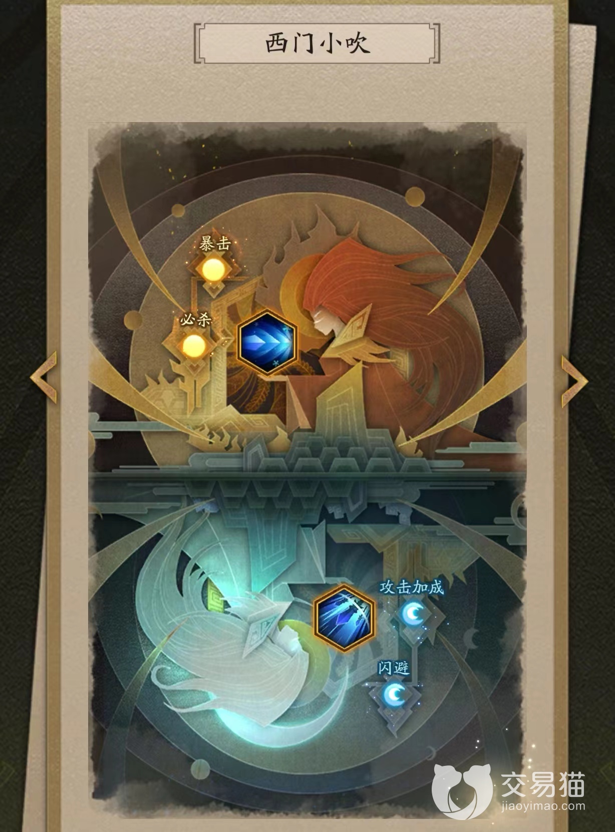 西门小吹主要的作用不在于输出,而且极强的承伤、控制能力,虽然控制是单体的,但是有2回合,当释放目标是对方主C时,就能极大程度打乱敌人的节奏。