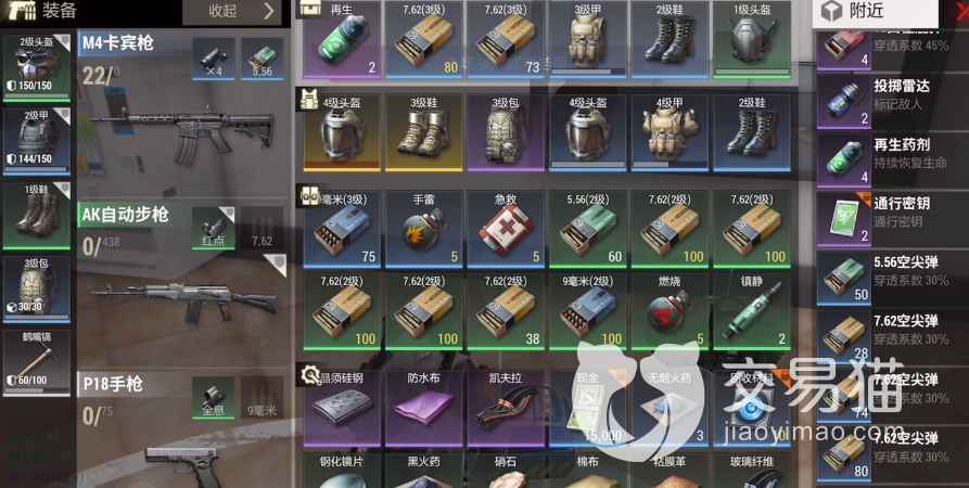 第二种:我们可以通过淘汰别人获得其包里的物资,这里我们可以看到这位玩家包里有2张‘通行密钥’,需要注意的是即使你开启了自动拾取功能,‘通行密钥’这类道具也不会自动拾取,一定要手动拾取,不然就错过了这个机会。(注意此方法取决于被淘汰的人有没有获得密钥)