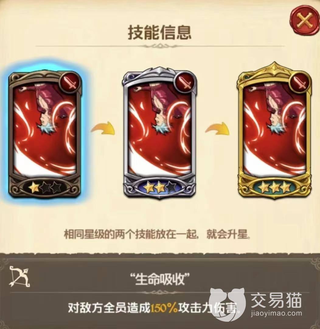 同样的,你需要把相同等级的两个技能放在一起,这个技能就会升星,变得更强。