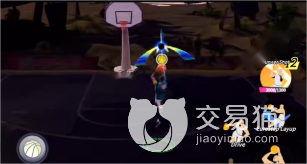 在三分线外因为冲力往前,利用核心力量在空中滞留,与此同时双脚弓箭步调整平衡、随之完成出手完成投篮在没有其他角色进行干扰时,此球必进。