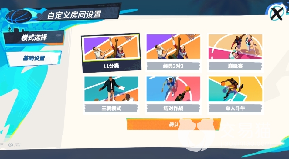 自定义房间是各位玩家自由练习的地方。根据目前已知的自定义房间中除了11分赛,经典3 V3,巅峰赛,王朝模式这种比较为大众所熟知的类型的模式以外。还有3种特别的模式,分别是单人斗牛,结对作战以及篮板房,这些模式都可以邀请好友玩家一起进去房间玩耍,或者与电脑作战。