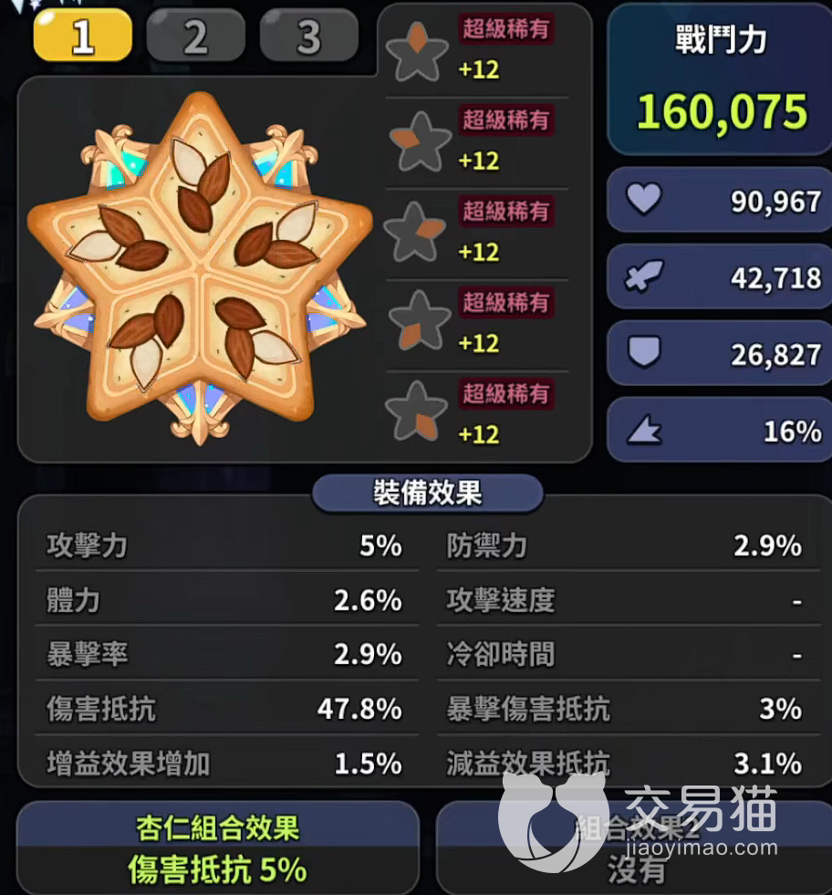 基础属性面板方面,在只有一星60级的情况下,其攻击力达到了相当不错的42k左右。在一众魔法型角色当中,也属于非常高的水平。此外,体力90k以及26k的防御力算是中规中矩。毕竟作为一个输出饼干,这两点不会特别高也是情理之中。暴击率方面有16%,搭配好一定的配料的话,那么还能更高。
