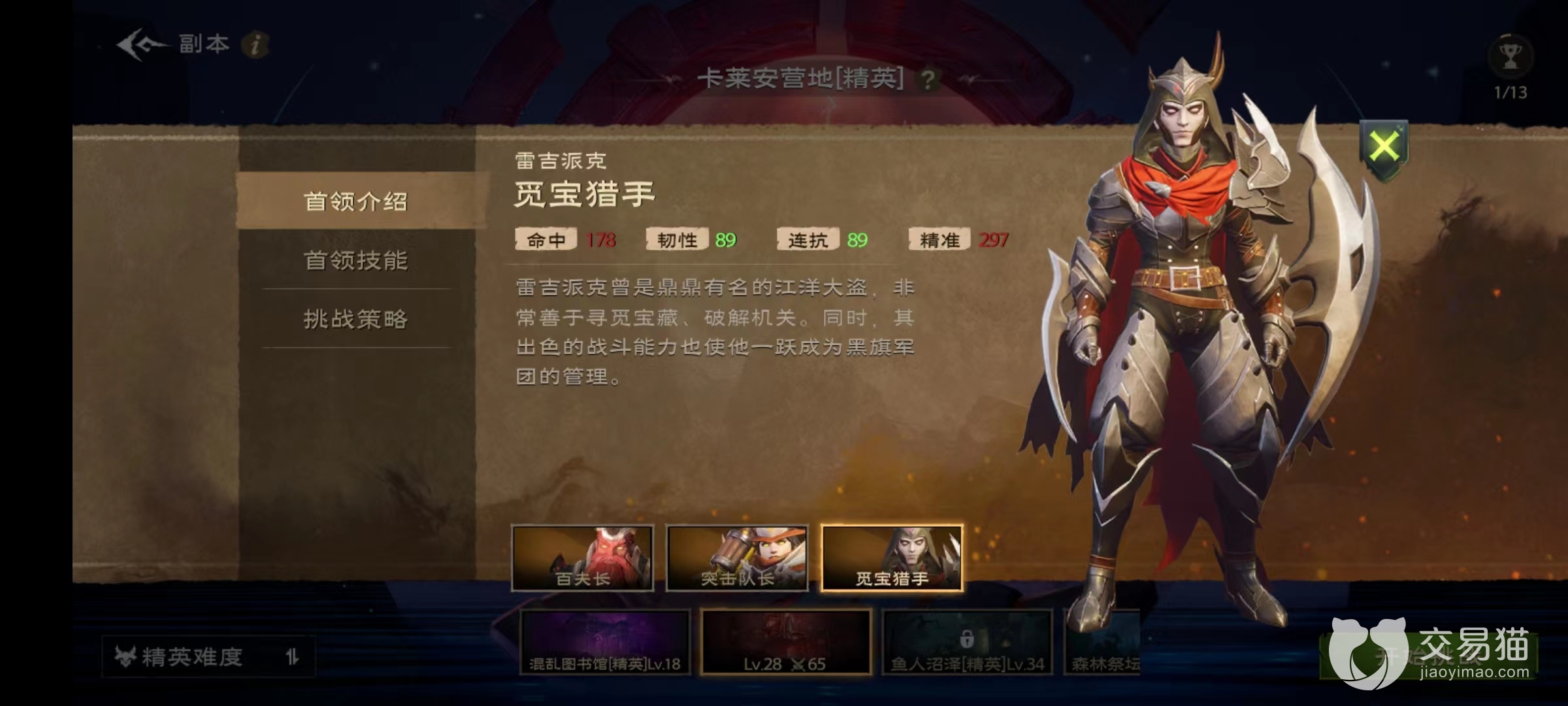 最后的觅宝猎手技能包括毒镖,乱刃飞射,潜行,偷袭等。注意要躲开乱刃飞射伤害范围,在进入到潜行后留下的武器会发射出飞刃,也要注意躲开。释放毒镖后会在地面上产生毒液地面,一定要及时跑出去,而且毒镖施法目标是距离最远目标,治疗注意照顾好。