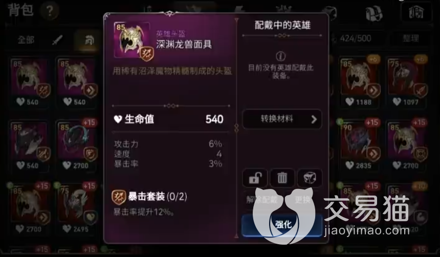 2、输出装备:通常情况下都是优先去重铸升级主C输出的装备的,这样可以加快刷副本的效率,从而达到一个更良好的循环。输出装备中双暴三攻的装备优先度是最高的,所谓的双暴三攻是暴击率、暴击伤害、攻击、攻击加成、速度,这是输出位置肯定会用到的属性,同时也是该游戏中最为稀有的,这类装备是要优先升级。