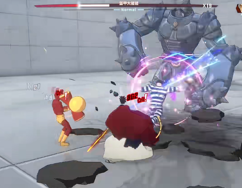 游戏的玩法相对简单,玩家需要操控一位角色进行作战,每个角色都拥有两个技能以及攻击模组,玩家需要根据场合进行使用,比如说性感囚犯的技能多为近战连击,可以释放高频率的物理伤害,面对远程boss的时候会相对吃力,这时候就需要利用小技能和大招来进行锁定攻击了。