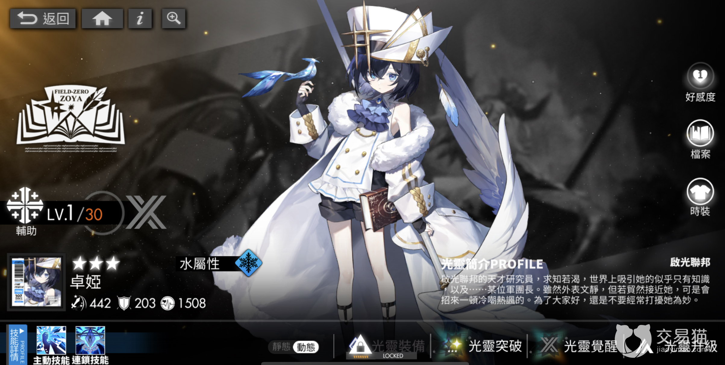 卓娅与菲莉诗同为水属性,在游戏中是人人开局就能够获得的光灵。虽然仅仅只是三星光灵,但她的连锁技能和主动技能都会为队伍中的光灵带来较为客观的血量回复,在达到突破三级后,会为原本技能冷却时间就只有两回合的卓娅再次带来技能冷却缩减,大大提高队伍中光灵的存活能力。