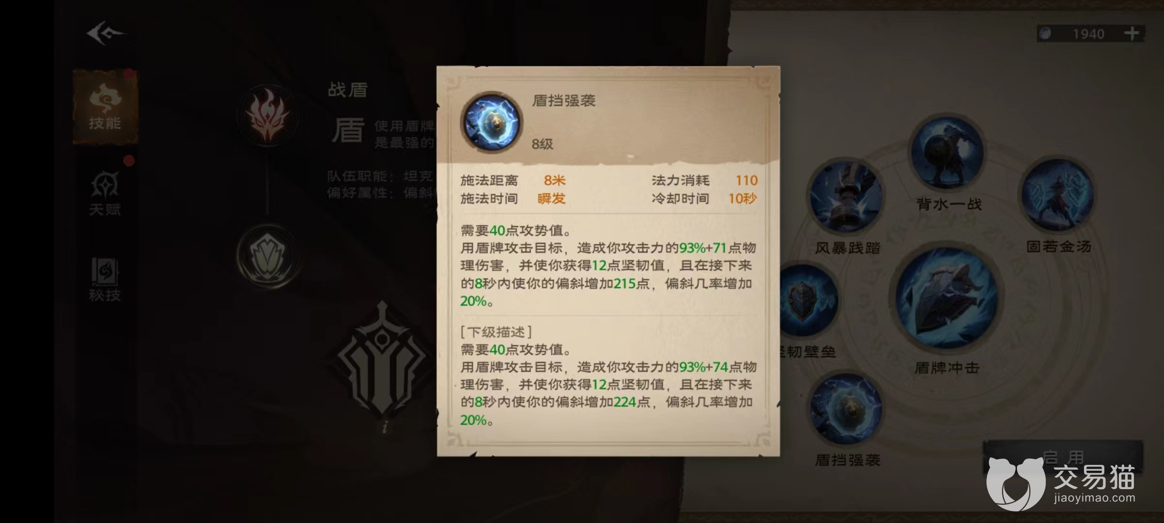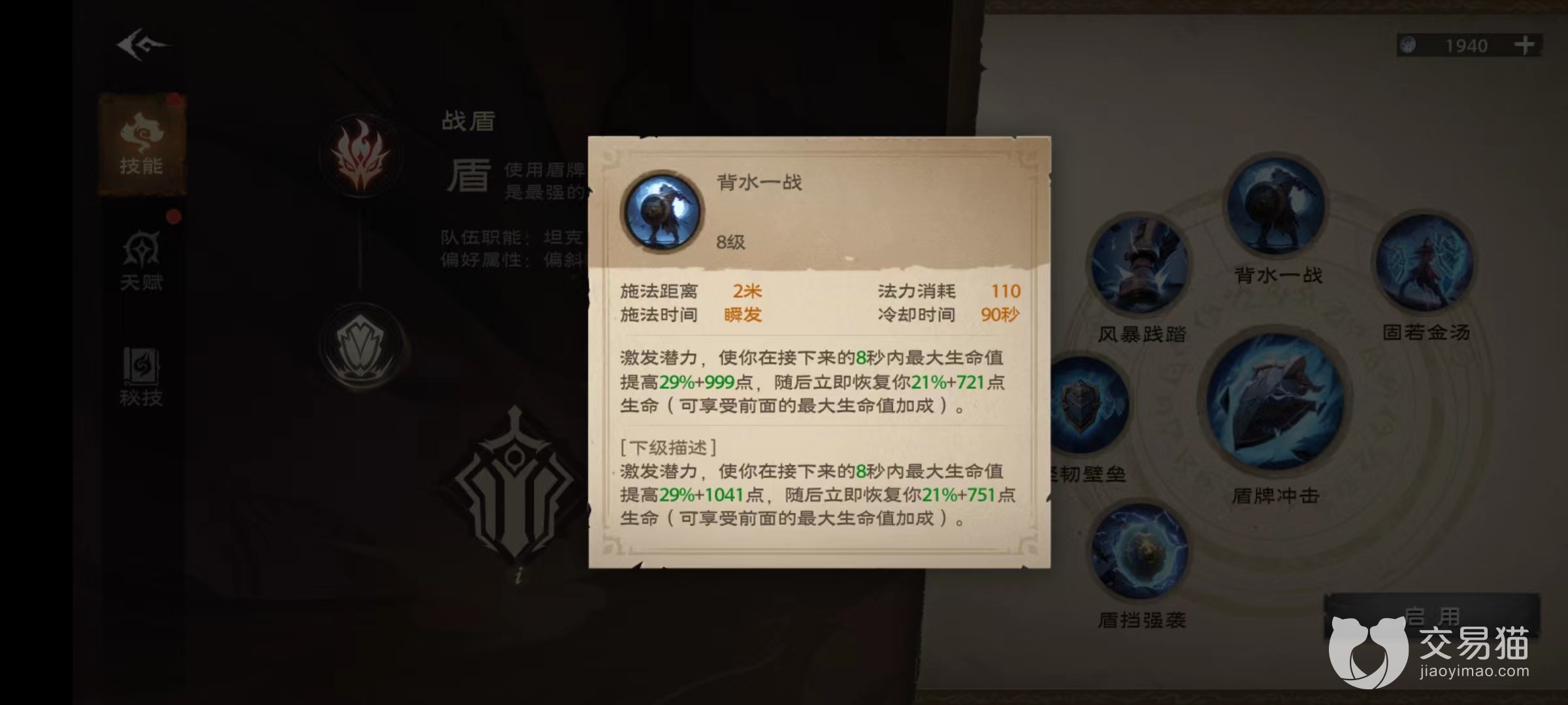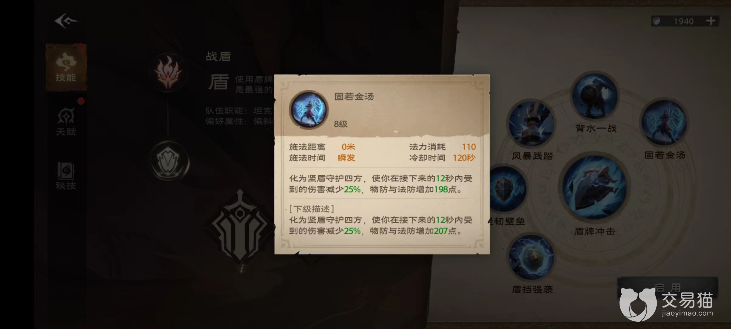 技能方面同样给力,固若金汤在使用之后是接下来12秒内受到伤害降低,同时提高物防和法防,此技能一开治疗压力将会小很多。还有背水一战,是在接下来8秒钟时间内提高最大生命值,并且立即恢复大量血量,在关键时刻如果治疗难以跟上,可以自己开启保命。其他技能还有坚韧壁垒、盾挡强袭等,坚韧壁垒使坚韧值转化成强大护盾吸收伤害,盾挡强袭则是用盾牌攻击目标获得坚韧值,接下来的8秒钟之内偏斜大幅提升。