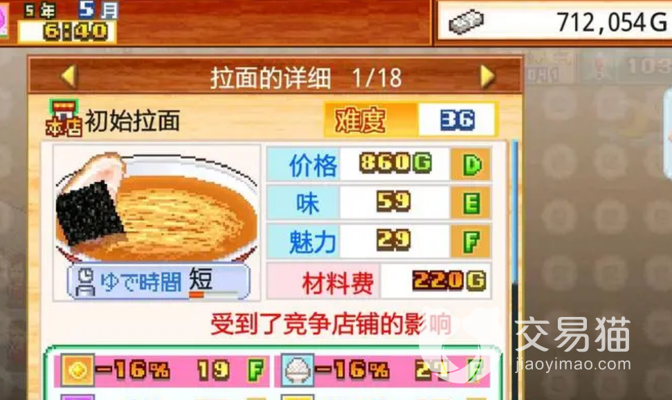 6段之后不需要犹豫,直接搬家刷客户。之前不怎么做的斗技场需要去参加了。参加的比赛奖品对于拉面的提升很重要。除此以外要尽量多解锁地区获取更好的小麦和水,这是提升拉面四维最重要的。