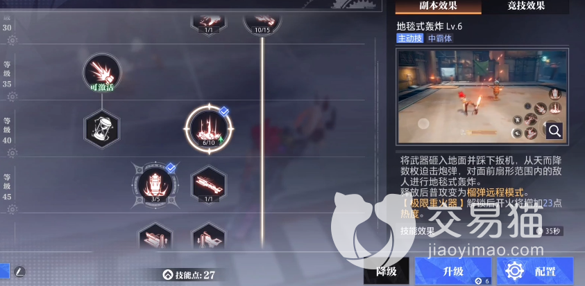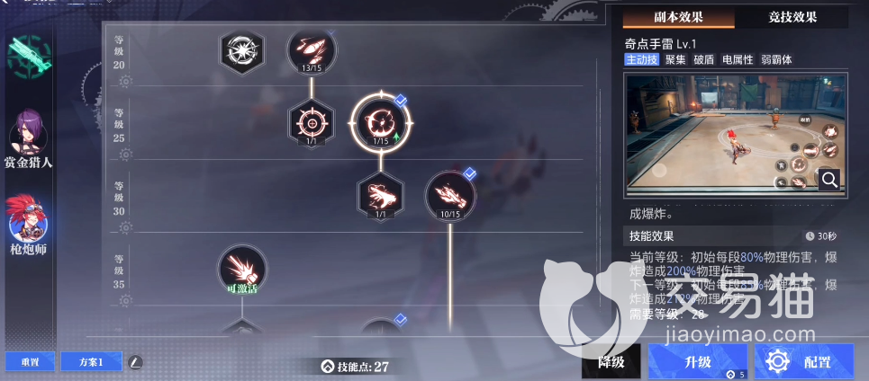 首先是主动技能方面的加点选择,这里大家可以考虑狩猎者轰炸和奇点手雷、重火力狂潮等核心的输出技能,当然了像蓄力的技能负极子炮也是不错的选择,在完美蓄力以后的伤害是非常恐怖的,并且清怪的能力也是不俗。