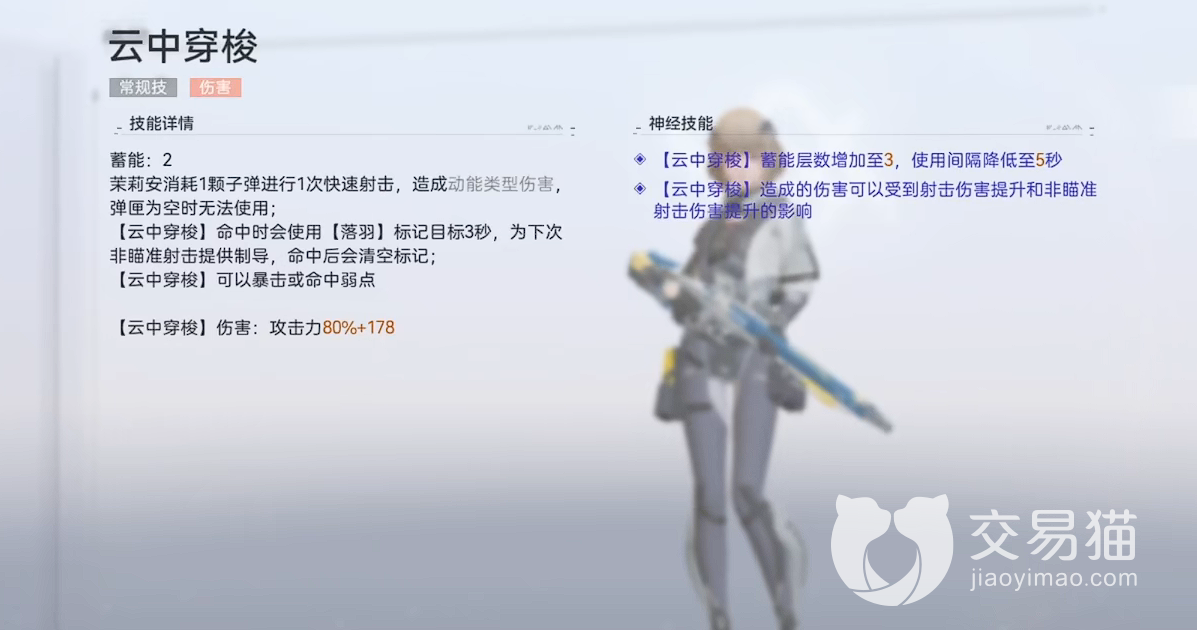 此外,在该角色一命解锁之后。瞄准射击会对目标标记留下碎羽,会使得我们下一次的云中穿梭自动向碎羽释放。这使得我们的技能也可以自动瞄准,达成一个更加流畅的自瞄效果。再加上我们的专武,基本上在对boss过程当中,可以做到全程自瞄作战,刷图效率非常快。