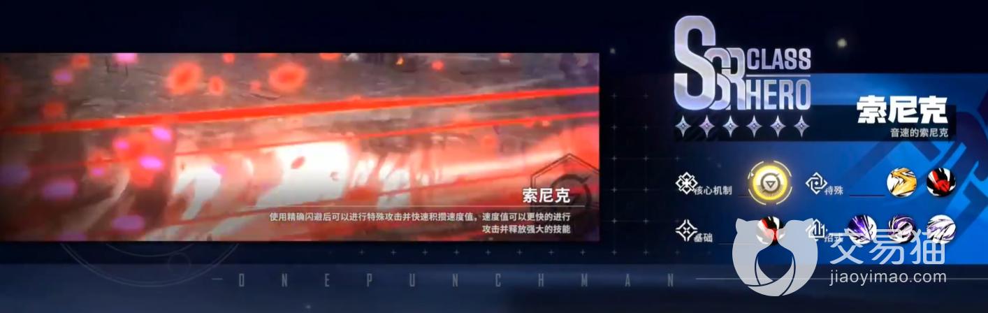 音速索尼克的技能机制完整,可以凭借着自己的速度值来打出高倍率的技能伤害,就是需要一定的启动时间以及闪避技能,这样才能运用好该角色,目前这就是小编提供的一拳超人世界音速索尼克技能介绍的信息。