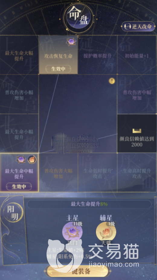 通常,洗出这三个命盘配置就是非常理想的。虽然严白虎的输出在防御型密探中相对较高,但在队伍中通常已经有足够的输出能力,因此在洗命盘时不需要关注提高攻击的选项。