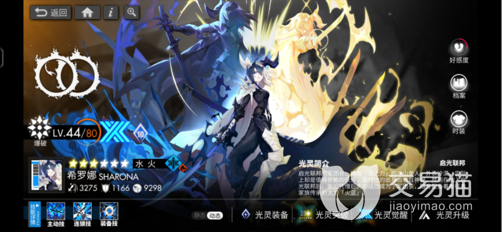 希罗娜的等级是一个六星的光灵,她的主属性是水,火是她的附属属性,启光联邦组织的成员之一,同时她的血统也比较牛,是龙族后裔。玩家们通常戏称她为水刀。