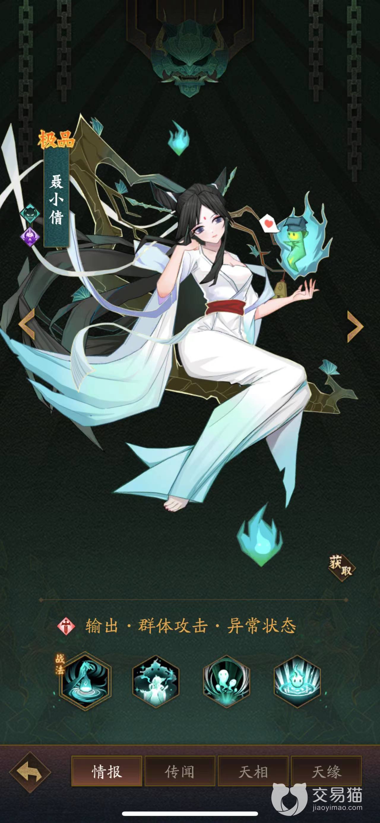 聂小倩属于贵族,虽然她的背景设定不算厉害,就是一个普通小鬼,但是在真实战斗中却很强,小编发现目前来看她算是鬼族的新输出女王了,而且攻击属于一个全体范围攻击,会给目标释放减益效果,很好的抑制了敌方较强的辅助回血能力。