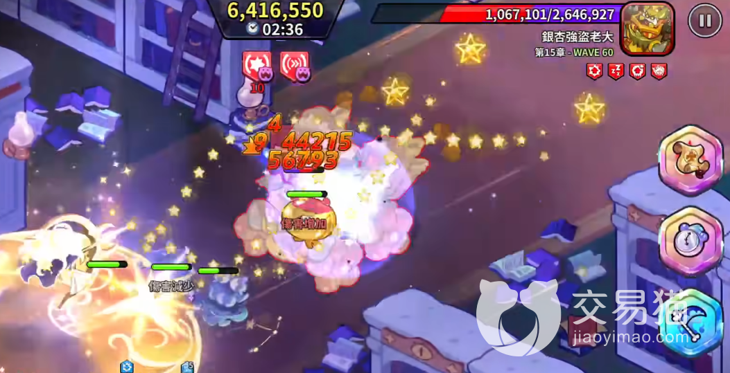 60wave:打boss银杏强盗老大,有哪个队就上哪个队。