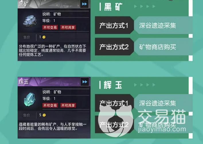 晶核游戏中的矿石分四种,基本都是需要玩家通过跑图开采的方式去进行获取,黑色的矿石在深谷遗迹的地图里边进行开采或者直接去矿石商店进行购买,另外在这个地图中玩家还能遇见蓝色的玉石,两种矿物的采集地点基本相同,基本都是坑地或者是小镇子的周围,但是每天的刷新数量是有上限的,如果用完了就的等待刷新时间之后才可以。