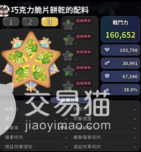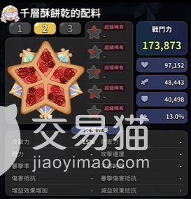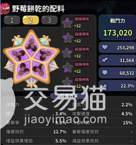 讲完前排型饼干和支援型饼干,小编最后推荐一个千层酥饼干,这个饼干属于后排射击型饼干,配料方面可以选择带全攻击,使用火红覆盆莓配料,是为了增加攻击力,其次还可以提高暴击,攻速和伤害抵抗非常的好用。