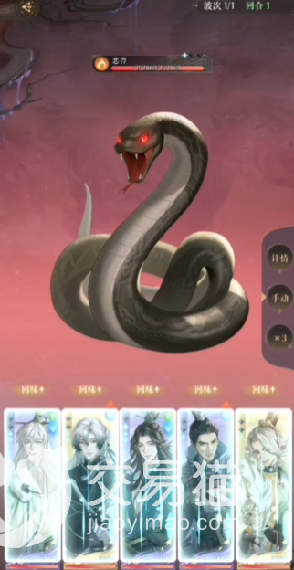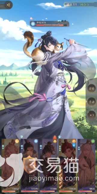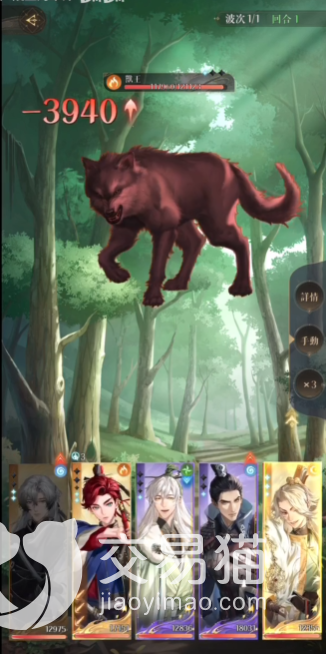 第一回合:王粲直接甩技能1,杨修则用技能2起手,狮子喵暂时不动,防御一回合,颜良则使用2技能起手,貂蝉不多说见面就打。
