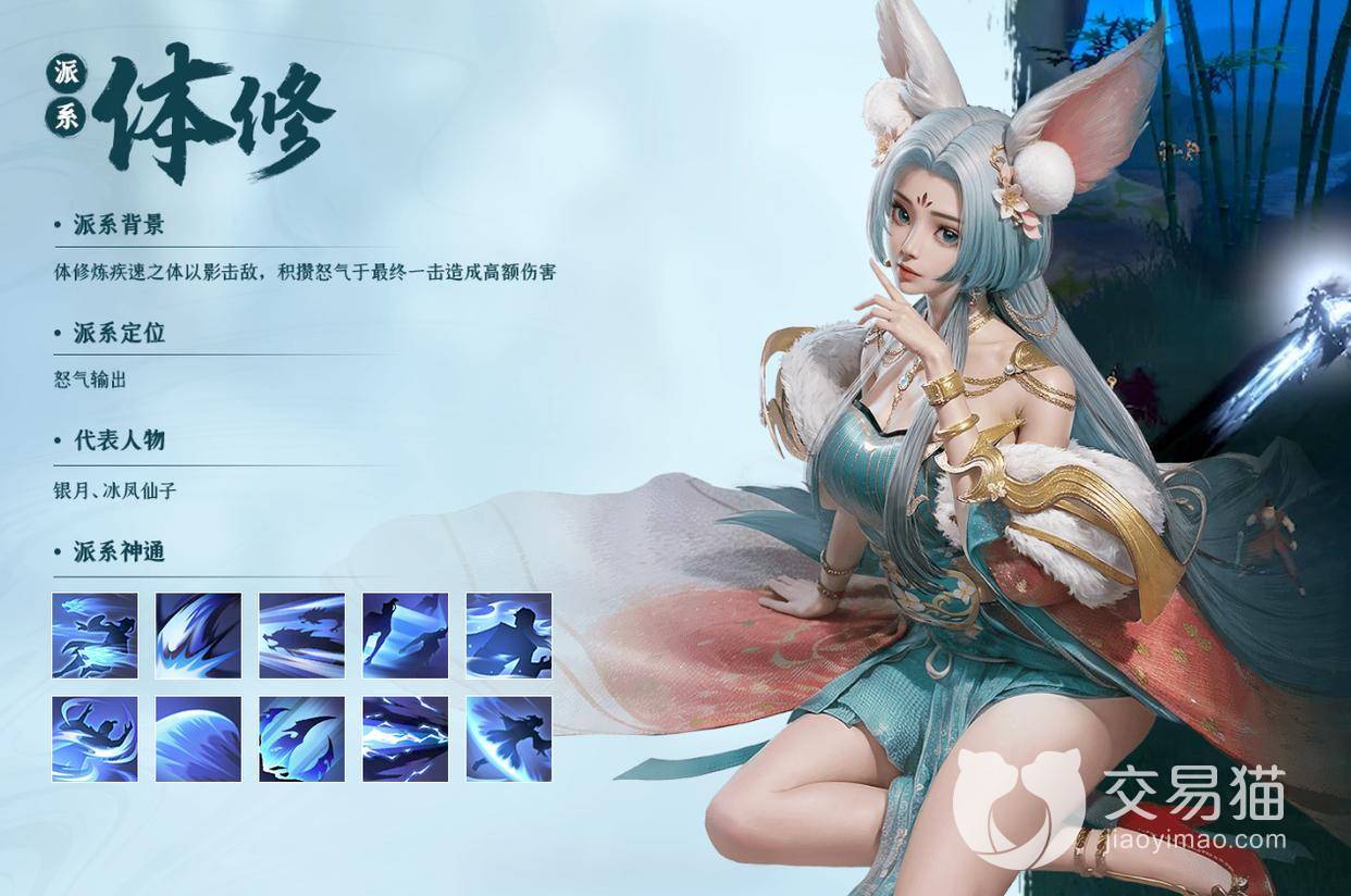 体修:该派系在和敌人对战中能够持续的爆发出高伤害。该职业的修炼要经历四大阶段。刚开始便是不断的操作基本功法来对抗敌人,直到晋升到第二阶段就可以获得和使用消耗怒气技能,给对手造成更大的伤害,再继续进阶,就可以操作影击提升怒气值来增强伤害输出,修炼到最高境界则能够在前面的基础上将各种元素提高到顶点,将敌人一击致命。