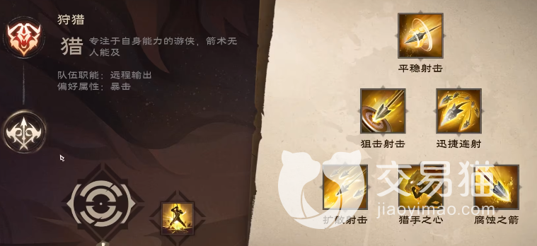 游侠的转职之一狩猎形态,狩猎形态属于远程输出技能,而所有的天赋都是围绕着技能在选择的。魔能射击:这个会提高自己的攻击力,而且部分技能还会获得强化。天赋推荐:1、平稳爆发,在连续使用两次普攻后会让暴击率增加,狙击射击的准备速度加快。2、重伤箭矢,这个技能在造成暴击伤害后,会使敌人受到持续性的伤害。小伙伴们要注意的是在游戏中玩家们在天赋树的选择上数量是80选40。