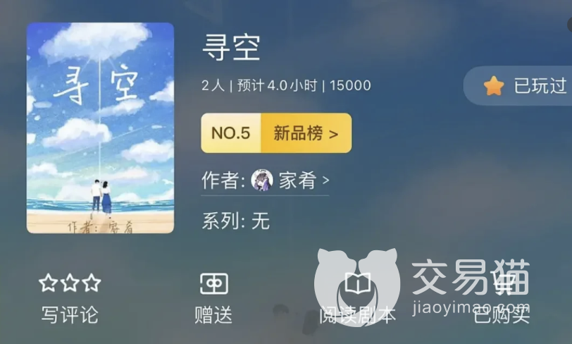 之后要推荐的剧本时寻空,这个剧本还特地推出了豪华版本。买了豪华版的玩家可以获得一个跟封面相关的头像框。剧本设计上整体篇硬核,轻度玩家慎入。作者也曾说过,他的整体剧情设计思路是让男女主互相救赎,在救赎中逐渐走进对方心里。这一本的推理难度较上一本来说还是比较难,非常考验玩家逻辑能力。