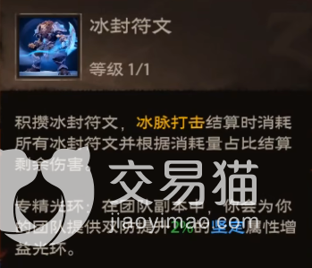 第7个技能寒风打击:获得冰封符文,对目标造成伤害,自身双防提升,可叠加,可充能两次。推荐天赋选择:强化寒风打击:普攻伤害提高,提升双抗效果提高。这个强化技能可以升级三次。游戏中还有被动技能需要玩家们去选择对应的天赋,小编推荐选择被动天赋:急冻:普攻在冰脉打击期间获得的冰封符文增加。这个天赋可以增加坦克专精的收益,以上天赋主要是针对技能来选择的,在带上野兽疾行:疾行还会解除你自身限制移动效果。作为一个位移技能来使用,都是非常不错的选择。